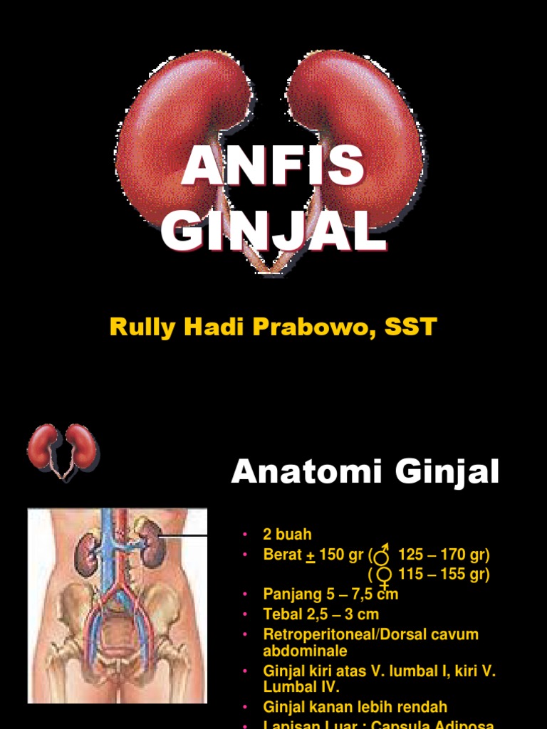 Ginjal terletak pada rongga abdomen posterior, dibelakang peritoneum di area kanan dan kiri dari kolumna vertebralis. Ginjal merupakan salah satu bagian organ dalam yang mempunyai fungsi utama yakni sebagai alat ekskresi penting bagi manusia. Ginjal berwarna coklat kemerahan dibelakang peritonium, terletak pada dinding posterior abdomen, di depan dua kosta terakhir dan tiga otot-otot besar, yaitu transversus abdominis, kuadratus lumborum, dan psoas mayor.