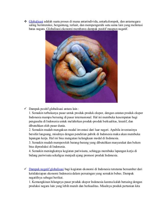 Globalisasi Adalah. Di era globalisasi yang didukung perkembangan teknologi, alat transportasi. S ecara bahasa arti Globalisasi adalah Suatu proses yang mendunia, suatu proses yang membuat manusia saling terbuka dan bergantung satu sama lainnya tanpa batas waktu dan jarak.