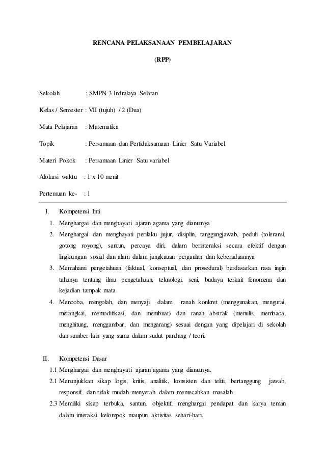 (DOC) CONTOH RENCANA PELAKSANAAN PEMBELAJARAN (RPP | ronny ... (Iva Gutierrez) Standar Kompetensi Menentukan unsur dan bagian-bagian lingkaran serta ukurannya. Inti, berisi aktifitas siswa dalam proses pembelajaran untuk mencapai kompetensi dasar dengan menggunakan metode. Rencana Pelaksanaan Pembelajaran (RPP) adalah pegangan seorang guru dalam mengajar di kelas.